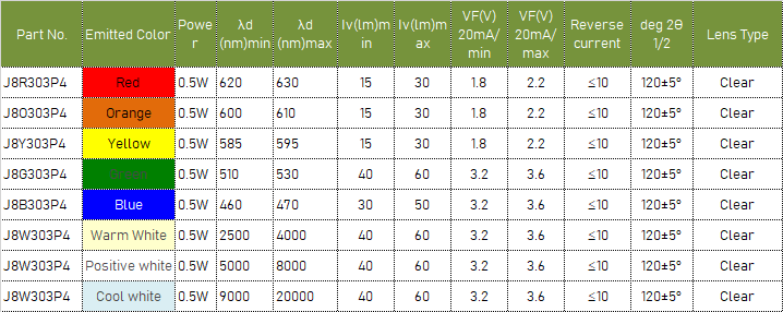 is the o-axis angle where the luminous intensity is 1⁄2the peak intensity.c. The dominant wavelength (λd) is derived from the